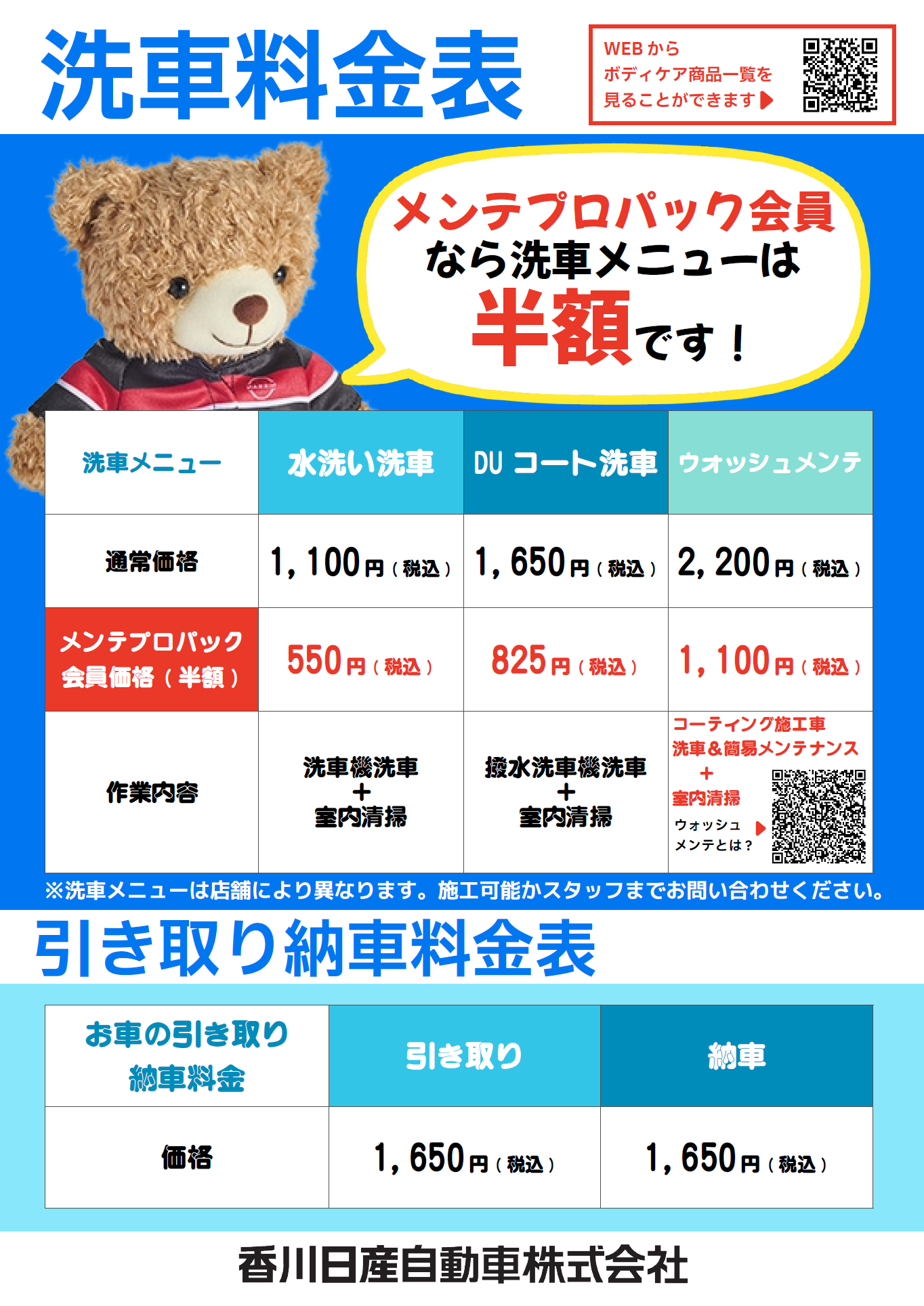 昨今の燃料費や材料費の高騰、人員不足に伴い、洗車料金の価格改定ならびに